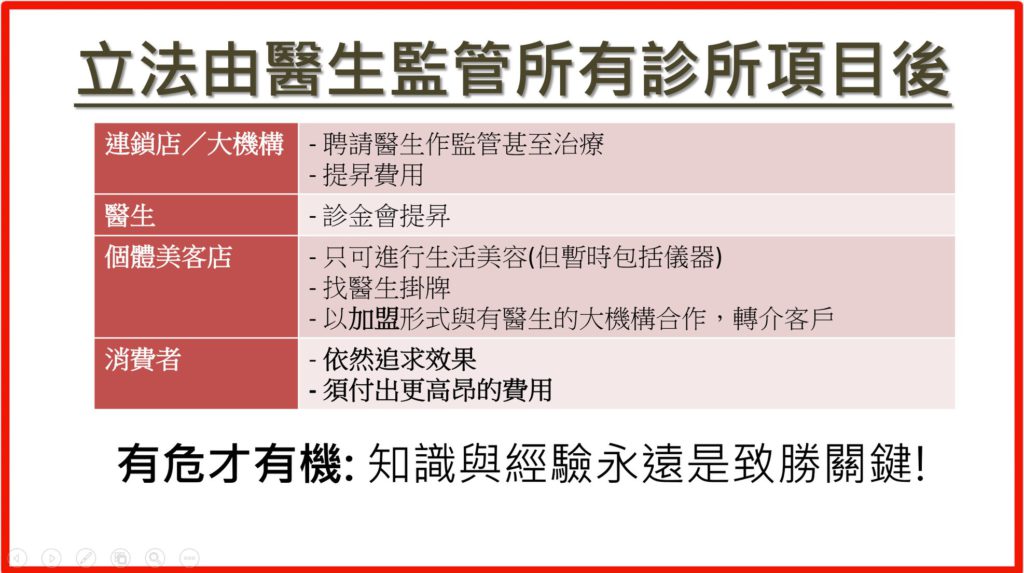 最新的醫療程序場地規管條例已於2018年11月30日通過了,將來進行醫學美容程序的地點必須申請牌照。 個人認為 …