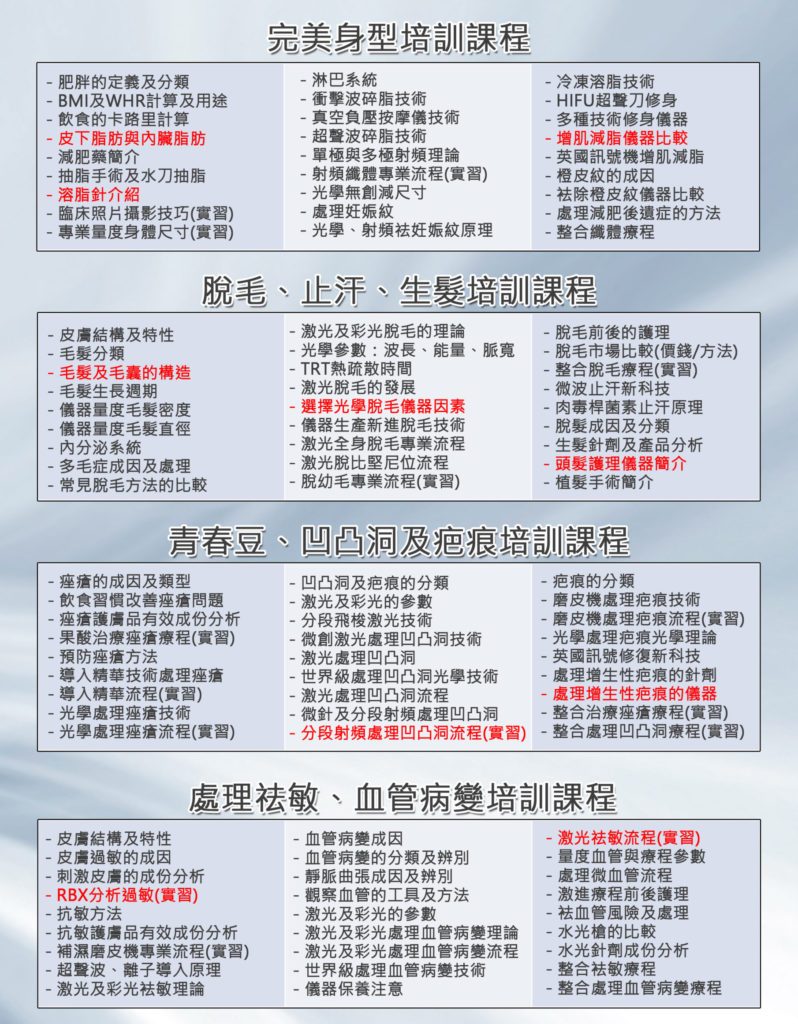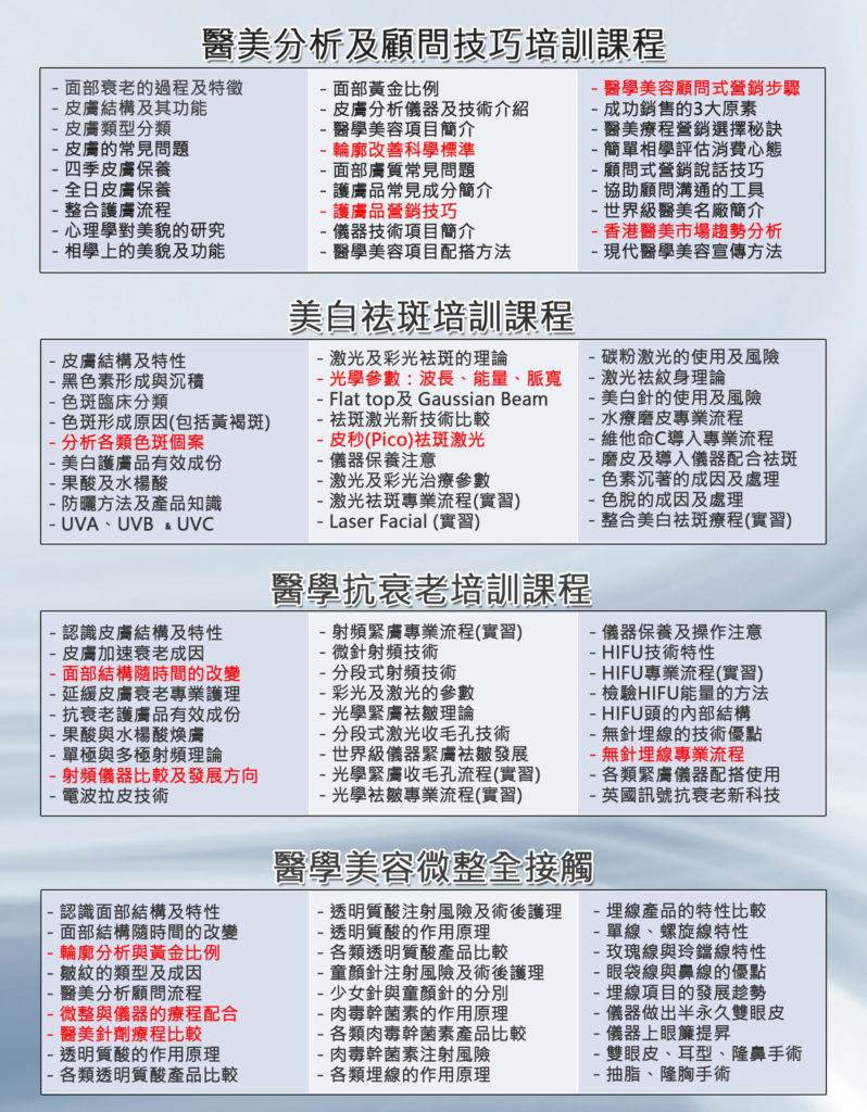 .8年來不斷設計和組織許多為美容專業人士而設的醫學美容工作坊及課程