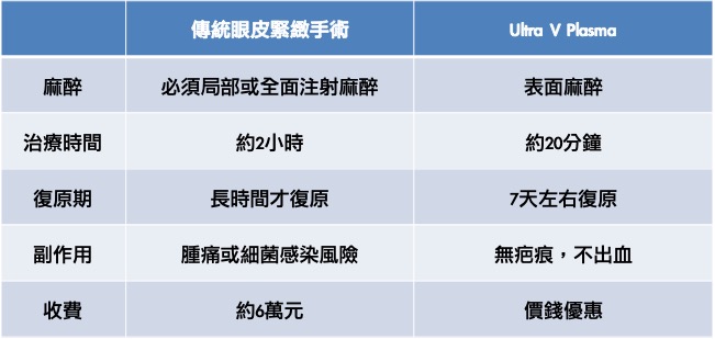 Ultra V Plasma Ultra V Plasma半永久雙眼皮・眼簾緊緻・祛疣祛癦新技術 成本低,易操作!雙眼皮、緊緻眼簾、祛疣脫癦通通搞掂!媲美CO2激光效果,卻只需7日修復期!能量自行調節,創傷小,更安全!一文看清Ultra V Plasma | 聯絡我們推薦值得信任的診所及美容院給你,合適的Blogger/Vlogger及其他人選更可FREE享用療程。診所或美容院歡迎聯絡我們,提供更多專業營商及療效建議-64732877 目錄: 1 - Ultra V Plasma 療程資訊 1.1 Plasma(等離子)治療是甚麼?1.2 Ultra V Plasma 療程的優點1.3 Ultra V 的發展與權韓真醫生簡介 2 - Ultra V Plasma 療程操作流程 2.1 Ultra V Plasma 治療範圍2.2 Ultra V Plasma 治療原理2.3 Ultra V Plasma 治療效果2.4 治療注意事項 3 - Ultra V Plasma 療程與其他療程比較 3.1 與CO2激光療程比較3.2 與傳統眼皮緊緻手術比較 4 - Ultra V Plasma 治療之市場資訊 4.1 為何選擇我們4.2 小冊子及宣傳海報 1.1 Plasma(等離子)治療是甚麼? 等離子(Plasma)是自由電子和帶電離子為主要成分的物質形態,等離子通常被視為物質除固態、液態、氣態外存在的第四種形態。儀器透過電能等離子化附近空氣,在極短距離針對最表層的皮膚,非常安全。等離子進入皮膚後,能瞬間加熱及凝固所選擇特定皮膚組織,而治療範圍以外的組織不會受影響。這個過程可改善皮膚和真皮的膠原纖維增生。 1.2 ultra V plasma 療程的優點 筆型設計既輕便又易於控制。 易於使用和操作,具有與CO2激光相同的功能,並有更短的修復期筆型設計易於使用低功耗低頻較少副作用 1.3 ultra V 的發展與權韓真醫生簡介 Ultra V是韓國著名抗衰老品牌,一直風靡香港及亞洲等地。 品牌創辦人權韓真醫生Dr. Kwon是韓國頂尖的抗衰老美容界權威,更是首批創立使用蛋白綫作提昇緊緻的專家。 權醫生在過去10多年間不斷走遍世界各地,為多達60個城市提供材料儀器及專業技術培訓醫生, 致力將Ultra V的醫學技術引領到全世界,亦將世界各地抗衰老的最新科技引入到品牌發展及研發。Ultra V 廠也由10年前專注發展線材到今天由日用護膚品到大型醫美儀器都有推廣出市場,包括每1秒賣出15支的黃金一滴精華及著名的無針埋線儀器Ultra V Lift、改變脫癦脫痣市場的Ultra V Plasma。 權韓真醫生訓練工作坊 參加者反應甚為熱烈 2.1 Ultra V plasma 治療範圍 2.2 Ultra V Plasma 治療原理 上眼簾收緊提昇:皮膚遇到高溫會立即明顯收縮,產生即時收緊效果70度以上高溫會令皮膚有輕微創傷,由於受損面積太小,皮膚會完全自我收復,而1至2個月的收復期間會增生膠原蛋白,拉緊皮膚 半永久雙眼皮:雙眼皮線其實是一條眼皮與肌肉連接著的位置。半永久雙眼皮目的是為了把眼皮焊接在肌肉上,治療人員會選擇眼皮上最少脂肪而又令雙眼皮美麗的位置焊接出一條線出來。而由於該條線面積大,皮膚不容易自我復原,加上焊接後眼皮摺位形成習慣,因此3次治療後效果多為半永久。 面部緊緻提昇: 2.3 Ultra V Plasma 治療效果 半永久雙眼皮治療後的六天變化 上眼簾緊緻治療後的六天變化 祛痣即時效果 祛疣即時效果 2.4 Ultra V Plasma 治療注意事項 Q:微創等離子治療後會怎樣?A:微創等離子治療後最初會使皮膚變得紅腫及短期微痂,微痂會在5-7天消去,發紅則在5-14天消去。 每次治療均會出現上述情況。幾個星期後這種皮膚顏色便會改善 。有些患者會持續一段較長的時間發紅。 Q:治療後有怎麼須要注意?A:在治療期間使用保濕霜有助皮膚改善。進行治療後2個月內要避免陽光直接照射,及建議使用SPF 30的防曬霜。解議使用原廠護膚品:﹣ Ultra EGF醫學級表皮生長因子: 協助微創治療後傷口更快修復,袪腫袪紅﹣ Renewderm Cream 消炎抗菌: 保護皮膚,治療後免受傷口感染﹣ Idebenone Ampoule艾地苯黃金一滴: 抗養化比維C強4倍,減少反黑風險 Ultra EGF醫學級表皮生長因子、Renewderm Cream、Idebenone Ampoule Q:須要多少次等離子療程?A:一般來說, 經過1至3次的微創等離子治療,皮膚得到很好的改善。 3.1 Ultra V Plasma 療程與CO2激光療程之比較 3.2 Ultra V Plasma 療程與傳統眼皮緊緻手術比較 4.1 為何選擇我們? – Ultra V正廠正貨保證– 營銷建議及配套: 由我們會給你更多貼近市場的營銷建議,確保你買「對」產品– 更多免費Ultra V講座與培訓,令你獲得更好的療效及更多的市場資訊– 質素承諾: 如有質素問題承諾妥善處理– 靈活的投資成本選擇: 我們有不同方案令你更節省成本– 需要好的療效: 平衡進取的治療參數及安全性,我們對此充滿信心– 維修與保養: 儀器出現甚麼問題我們也可以盡快在香港處理即使你已經購買了此儀器,也歡迎與我們交流,聯絡我們給你更多建議-6473 2877。 4.2 小冊子/宣傳海報