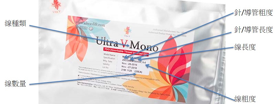 大V線在內地是形容各類玫瑰線的,真正的大V線用途特別,是非常長的倒勾線,可以由一邊耳前位置沿腮骨經下巴再到另一邊的耳前,用來加強腮骨位置及提拉皮膚。美國鈴鐺線及意大利線都是跟玫瑰線功能差不多,鈴鐺線是以圓錐形的物料代替倒勾,以360度扣緊皮膚加強拉力,兩者也由於是歐美品牌而可調高收費,受美容院及診所歡迎。而另一款韓國線系列是韓國其中一個有科研的大廠,在香港以本地醫生作培訓導師,加上良好的宣傳推廣而受到醫生歡迎。